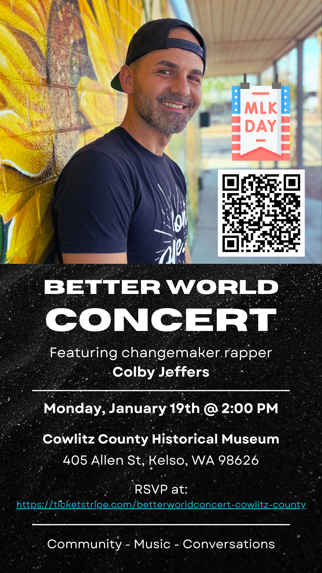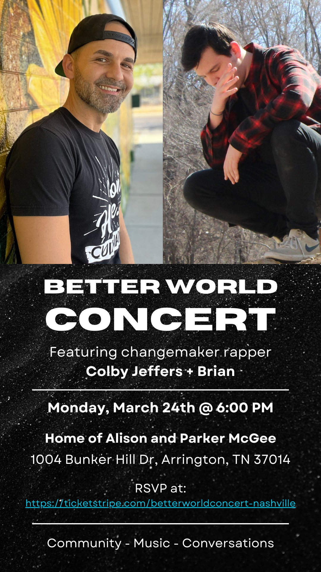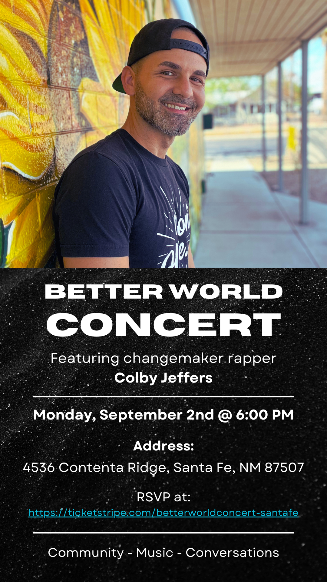 The Better World Concert Series w/ changemaker rapper, Colby Jeffers includes community building, elevated conversations, and musical performance all centered on contributing to the betterment of the world. It will leave you uplifted and inspired!